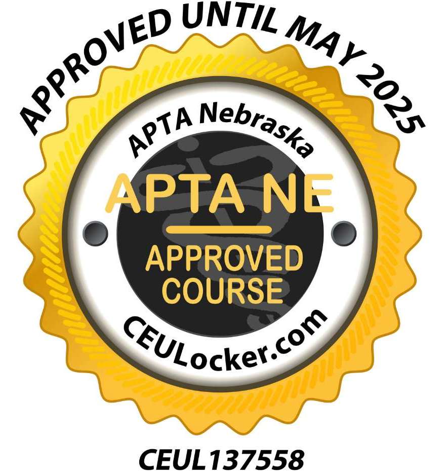 PT: OrthoNebraska is approved for 6.25 hours of continuing education for physical therapists by the Nebraska Chapter of the American Physical Therapy Association. Approval #: CEU137558
