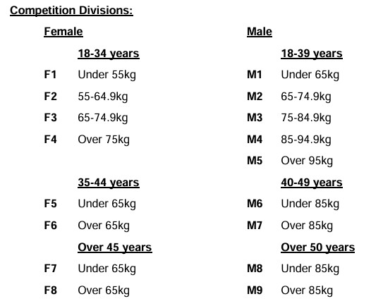 THIS YEAR, IN ADDITION TO THE NORMAL 70 OR SO DIVISIONS, AGED FROM 4YRS TO 74YRS, THERE ARE 17 SELECTION DIVISIONS FOR THE WORLD CUP IN NOVEMBER. IF YOU WISH TO BE CONSIDERED FOR A PLACE IN THE AUSTRALIAN TEAM, YOU NEED TO BE COMPETING IN ONE OF THESE. PLEASE PUT THE RELEVANT IDENTIFIER ON THE FORM.