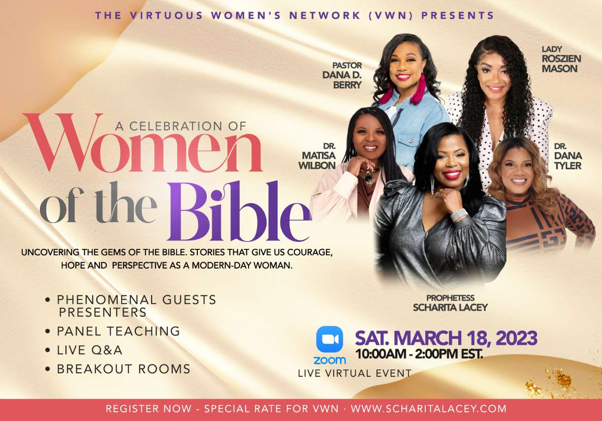 In honor of Women's History Month in March, the goal of our Live Event is to create a intimate virtual space that celebrates the achievements of Women of the Bible that we can draw courage, strength, hope and resilience through their journeys and untold stories as Modern Day Women. To celebrate our achievements as (Wives, Mothers, Daughters, Women in Business, Kingdom & Community Leaders) to create a safe place where women can nurture our hearts, honor our past and present and build a community of sisterly love.