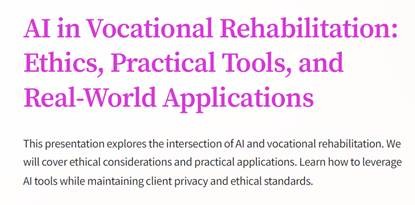 Topic: AI in Vocational Rehabilitation: Ethics, Practical Tools, and Real-World Applications
