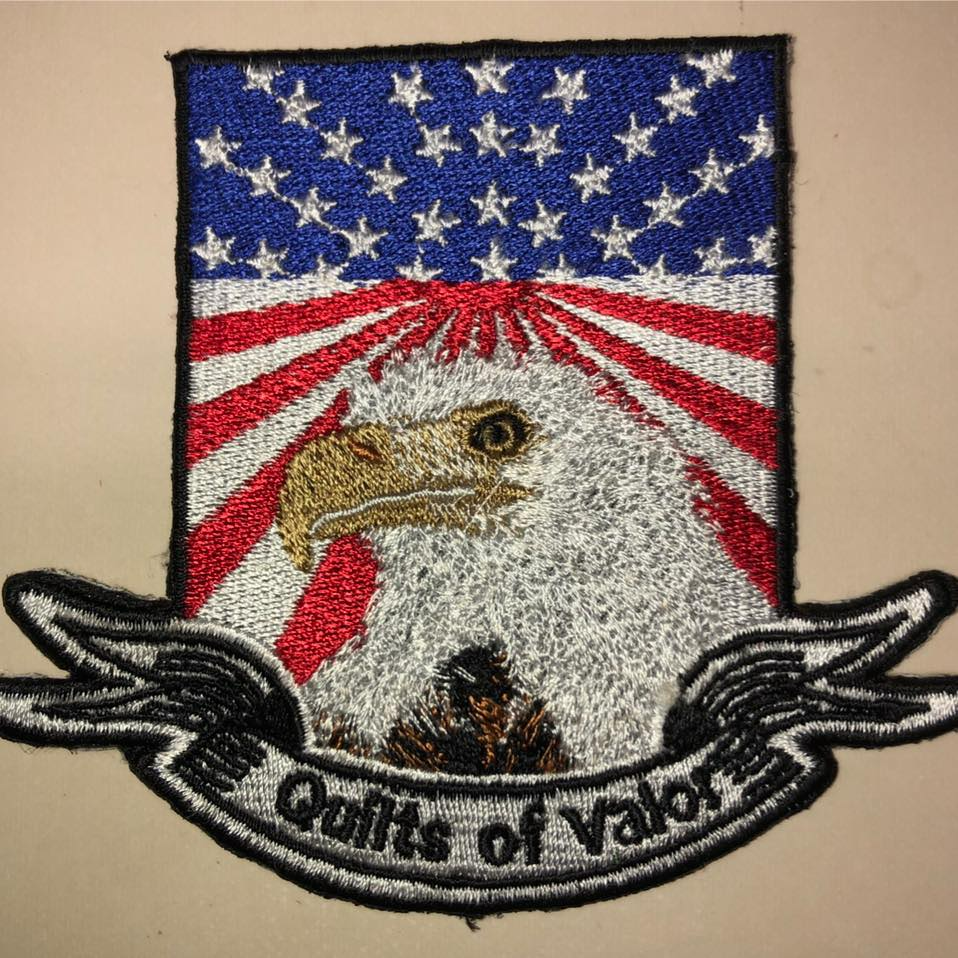 A Quilt of Valor is a generous lap-sized quilt (minimum of 55 X 65) made by a quilt-topper (the piecer) of quality fabrics and beautiofully quilted by a longarmer. After it has been bound, washed, labeled and wrapped in a presentation case, it is ready to be awarded. Quilts are awarded at many different levels: they may go to military hospitals where Chaplains award them to service members; there may be presentations of QOV’s to entire service units returning from combat deployments; they may be awarded at VA’s or presented individually. But no matter how a Quilt of Valor is given, the impact it delivers is unequivocal. As one recipient said “My quilt isn’t another military medal to be placed in a box and sit on my shelf. I was moved to tears.”