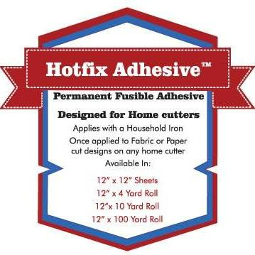 Hotfix Adhesive™ is the perfect partner to any home cutter. It is easy to work with and applies with an house hold iron to any Fabric or Paper. It even works with photos since it is acid free. It is a permanent bond and is washable. If you are using Hotfix Adhesive™ on a sewing project such as Appliqué, it will not gum up on your needle. It will not get thick and hard when you are layering small pieces on top of each other.