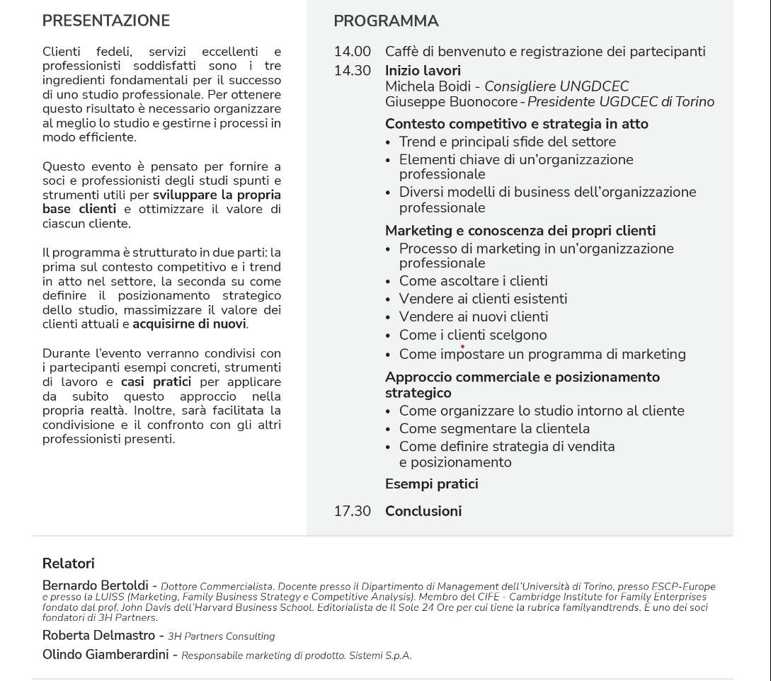 L’evento è stato organizzato per fornire a soci e professionisti degli studi spunti e strumenti utili per sviluppare la propria base clienti e ottimizzare il valore di ciascun cliente.