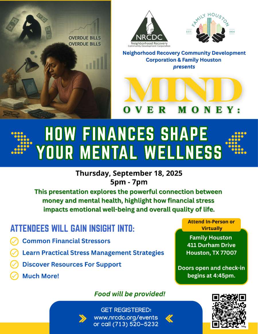 This workshop is being offered thanks to the commitment of the Financial Stability Coaches and Mental Health Counselors with Family Houston.