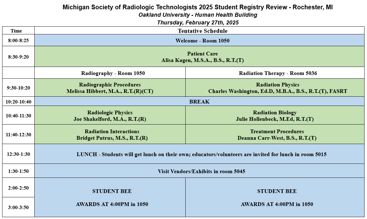 ● The MSRT will be reviewing all major topics of the registry for Radiologic Technologists AND Radiation Therapists, volunteered by educators around Michigan.