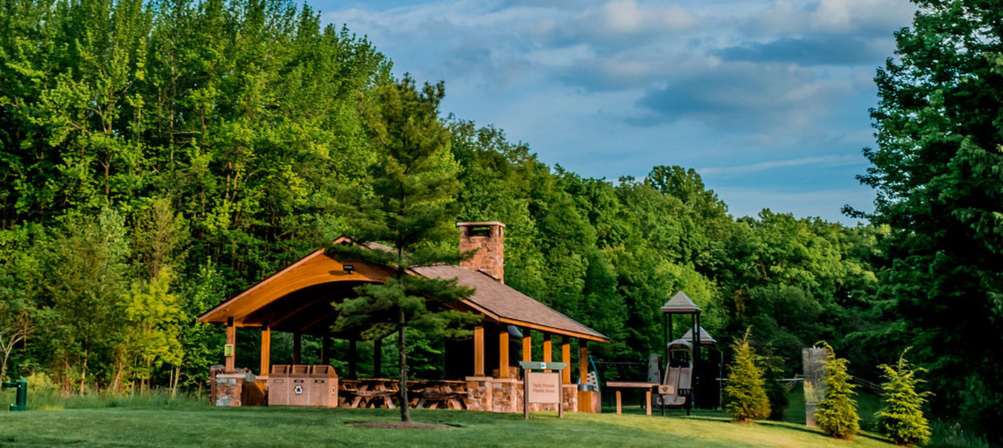 Chapin Forest has beautiful trails and a nice playground at the Hobart Rd entrance. We'll meet at the Twin Ponds Shelter, pictured here: