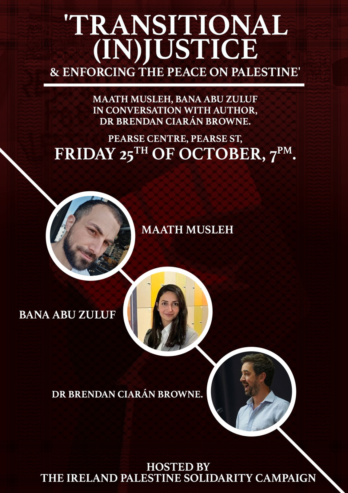 This event promises to be a thought-provoking exploration of crucial issues affecting Palestine, inviting participants to engage with the realities of colonialism and the urgent need for a decolonised approach to peace and justice.