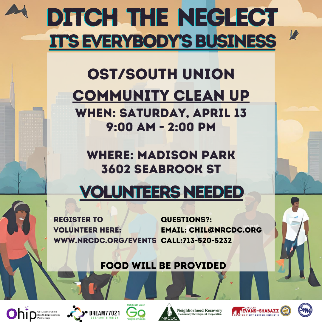 Join us for a community clean up event where we will be coming together to clean up litter and trash in OST/SU. This event is open to all community members, organizations, and local stakeholders who want to make a positive impact on our environment. Grab your friends, family, coworkers, and neighbors and come out to help us clean up Houston and keep our streets clean! We will provide all the necessary tools and equipment, including gloves, bags, and litter pickers. Just bring yourself and your positive attitude! So mark your calendars and join us for a day of giving back to our community and making a difference in Houston! Can't wait to see you there!
