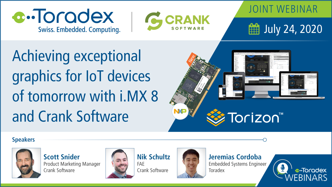 Grab your free registrations here: https://www.toradex.com/webinars/exceptional-graphics-for-iot-devices-with-toradex-verdin-crank-software